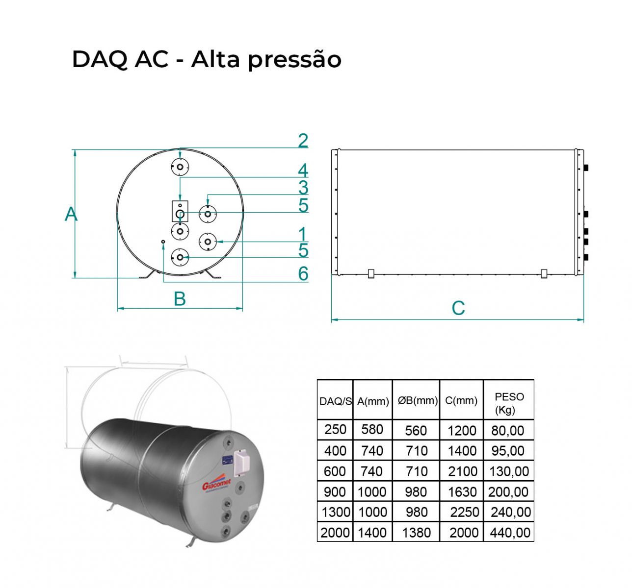 O DAQ/S da Giacomet é totalmente executado em aço inoxidável (AISI 304) nas partes em contato com a água.