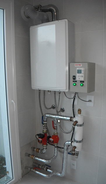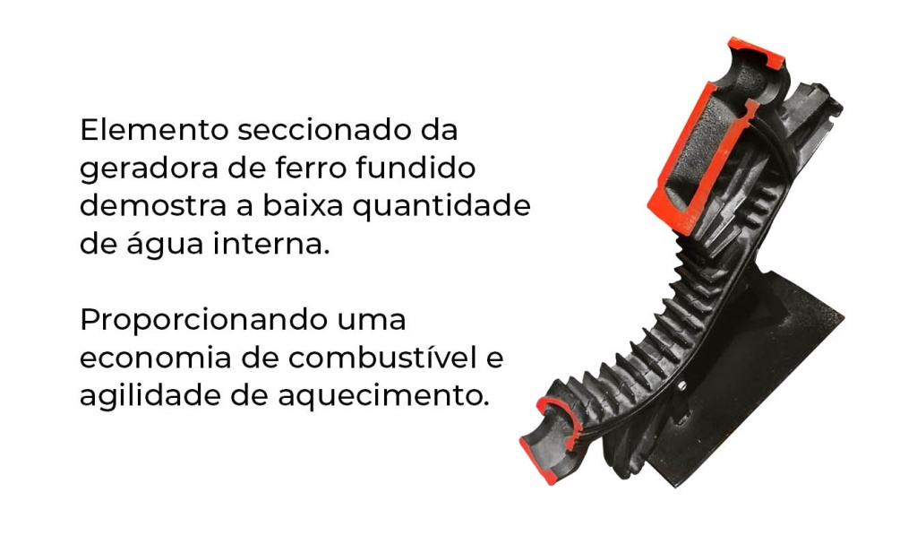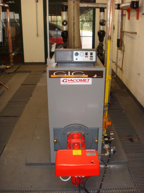 De fabricação italiana, modelo de alto rendimento, dotada de queimador a gás (GLP/NATURAL) ou óleo diesel, inteiramente automático e de um termostato duplo, sendo um de comando para regular a temperatura de água e outro de segurança.