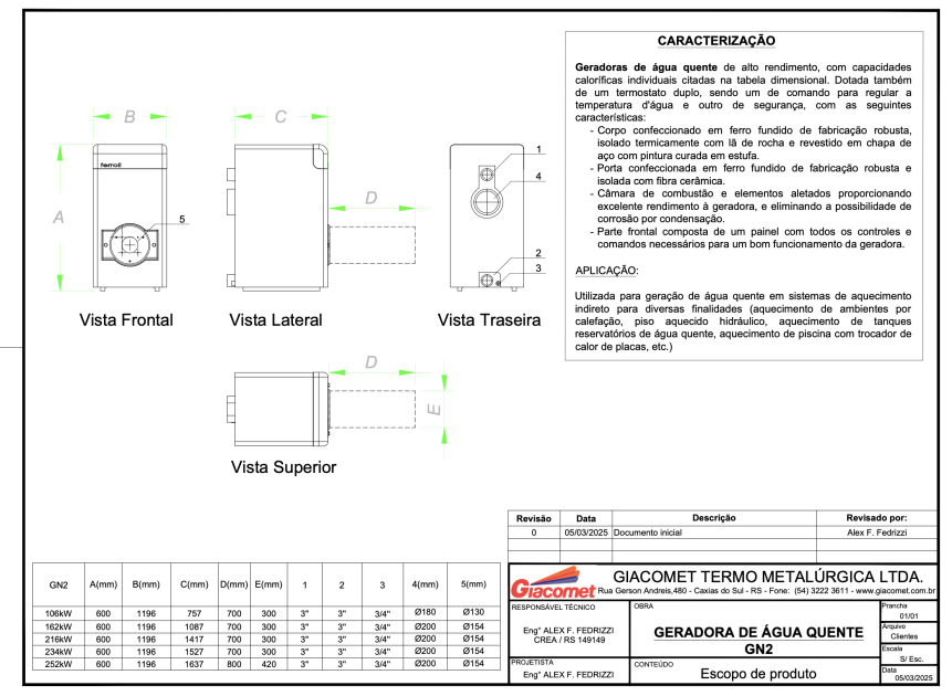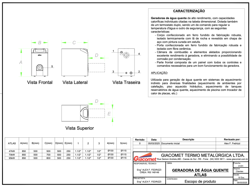 Prontuário do equipamento, contendo dados de projeto, materiais, procedimentos de fabricação e manuais.