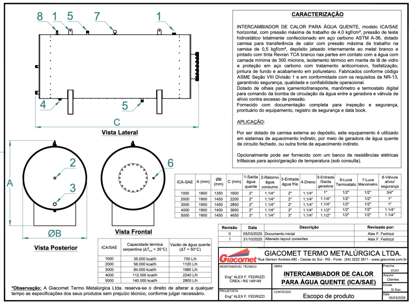 Projeto mecânico baseado em tensões admissíveis, cálculos de espessura, esforços combinados e fatores de segurança.